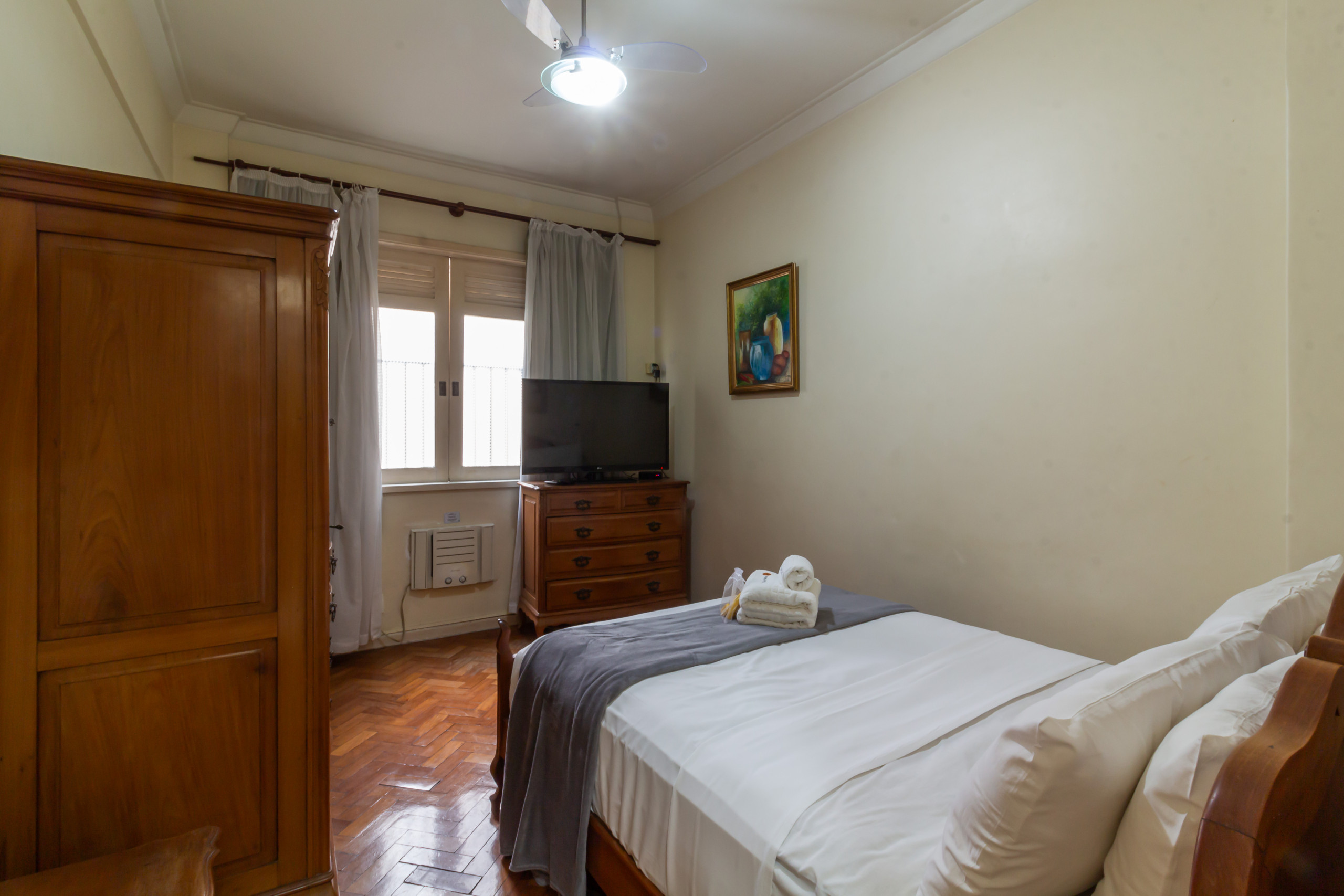 O apartamento em Rio de Janeiro tem 1 quarto(s) e capacidade para 4 pessoa(s). Alojamento de 60 m² coquete e totalmente equipado. Encontra-se a 0 m do aeroporto, 44 m "Casa do Barão", 62 m "Pendê Café", 150 m da estação de autocarros "BRS 2: Barão de Ipanema", 170 m "Jappa da Quitanda", 170 m "Restaurante Aipo Aipim", 210 m do supermercado "Zona Sul", 240 m do supermercado "Hortifruti", 250 m "Cheirin Bão Copa", 260 m da estação de autocarros "BRS 2: Bolívar", 300 m da praia de areia "Praia de Copacabana", 400 m do supermercado "Pão de Açúcar", 500 m "Hospital São Lucas", 600 m metro "Estação de Metrô Cantagalo", 1 km metro "Estação de Metrô Siqueira Campos", 2 km "Parque Natural Municipal da Catacumba", 2 km da praia de rocha "Pedra do Arpoador", 2 km "Parque Estadual da Chacrinha", 3 km da praia de rocha "Mureta do Leme", 33 km "Aeroporto Internacional do Rio de Janeiro - Galeão – Antonio Carlos Jobim" e localizado numa zona bem comunicada zone e junto ao mar.Dispõe de elevador, máquina de lavar roupa, ferro de engomar, acesso internet (wifi), secador de cabelo, ar-condicionado, 2 ventiladores, 2 Televisores.A cozinha é independente, de gás, está equipada com frigorífico, microondas, forno, louça/talheres, máquina de café, torradeira, máquina de sumos, fogão, pratos e tigelas, utensílios de cozinha.