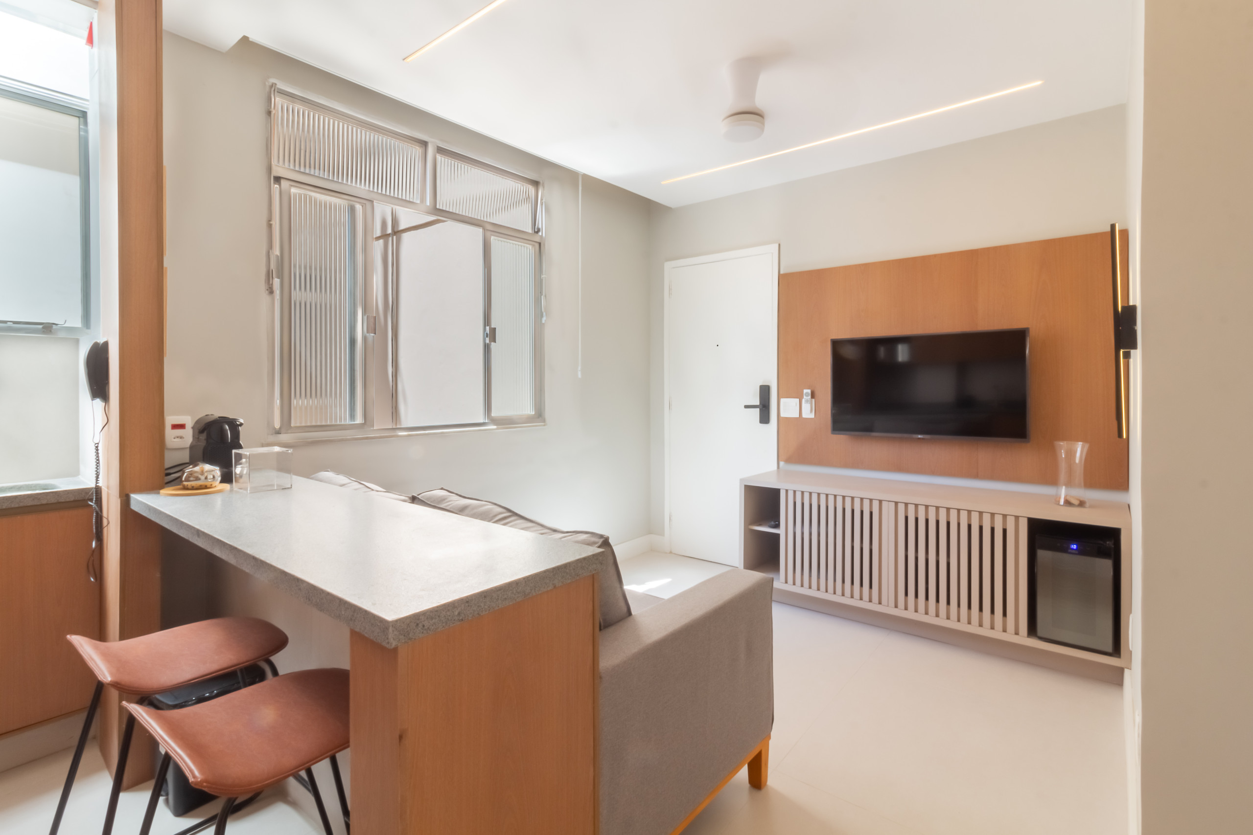 O apartamento em Rio de Janeiro tem 1 quarto(s) e capacidade para 2 pessoa(s). Alojamento de 40 m² mobilado com gosto e moderno. Encontra-se a 60 m "Restaurante Água na Boca", 70 m "Bar do Adão", 140 m do supermercado "Big Market", 260 m metro "Metrô Cardeal Arcoverde", 350 m "Copa Grill", 400 m "Churrascaria Palace", 400 m da praia de areia "Praia de Copacabana", 1 km da praia de areia "Praia do Leme", 2 km "Hospital Copa D`Or", 2 km da praia de rocha "Praia do Arpoador", 3 km da praia de areia "Praia de Ipanema", 3 km "Parque Municipal da Catacumba", 3 km "Lagoa Rodrigo de Freitas", 5 km da praia de rocha "Pão de Açúcar", 10 km do aeroporto "Aeroporto Santos Dumont - SDU", 22 km "RIOGaleão- Aeroporto Internacional do Rio de Janeiro" e localizado numa zona animada zone e junto ao mar.Dispõe de elevador, acesso internet (wifi), secador de cabelo, ar-condicionado, 2 Televisores.A kitchenette, de inducção, está equipada com frigorífico, microondas, louça/talheres, máquina de café, torradeira e máquina de sumos.2 comentários