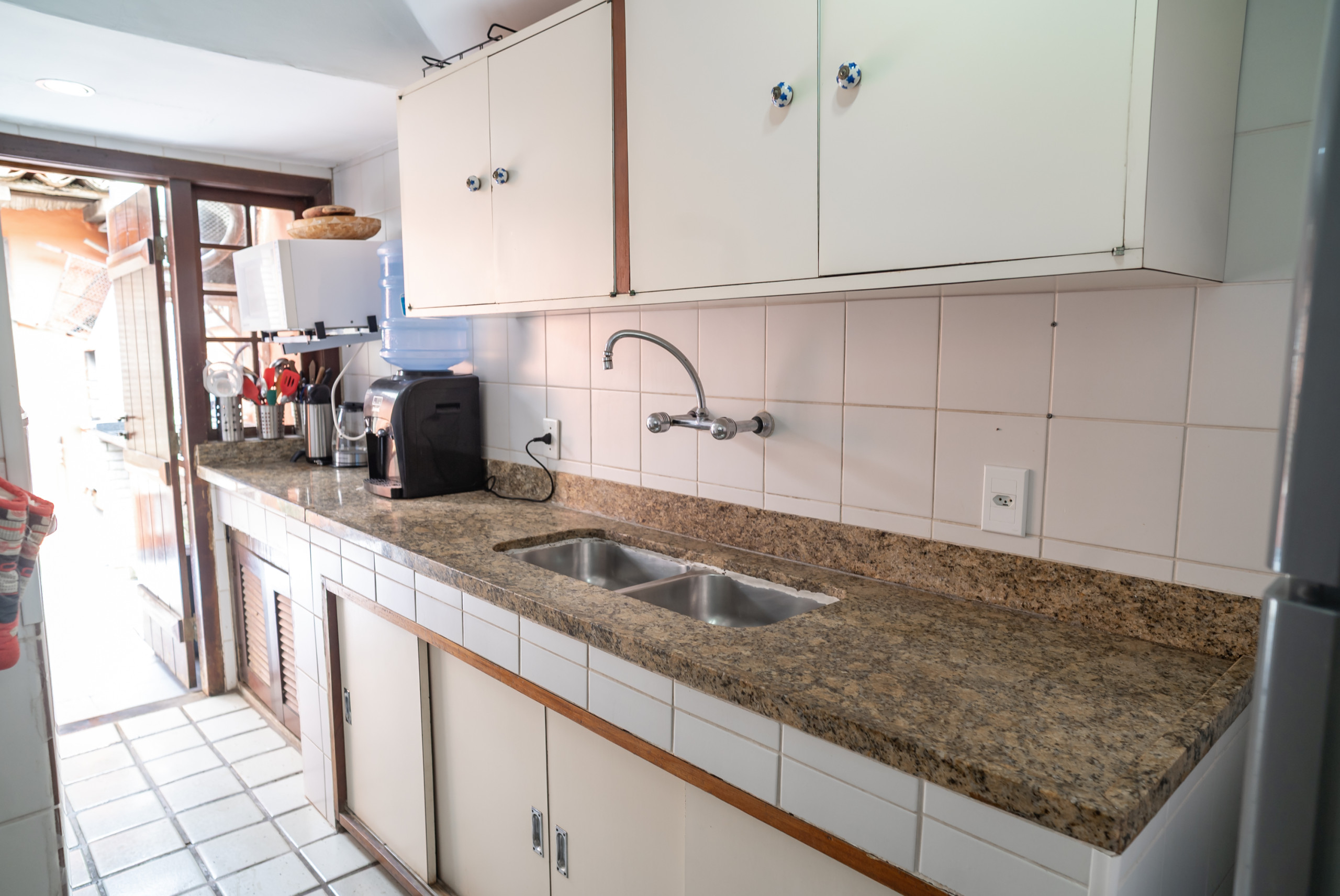 A cozinha é independente, de gás, está equipada com frigorífico, microondas, forno, louça/talheres, utensílios/cozinha, máquina de café, máquina de sumos e fogão.