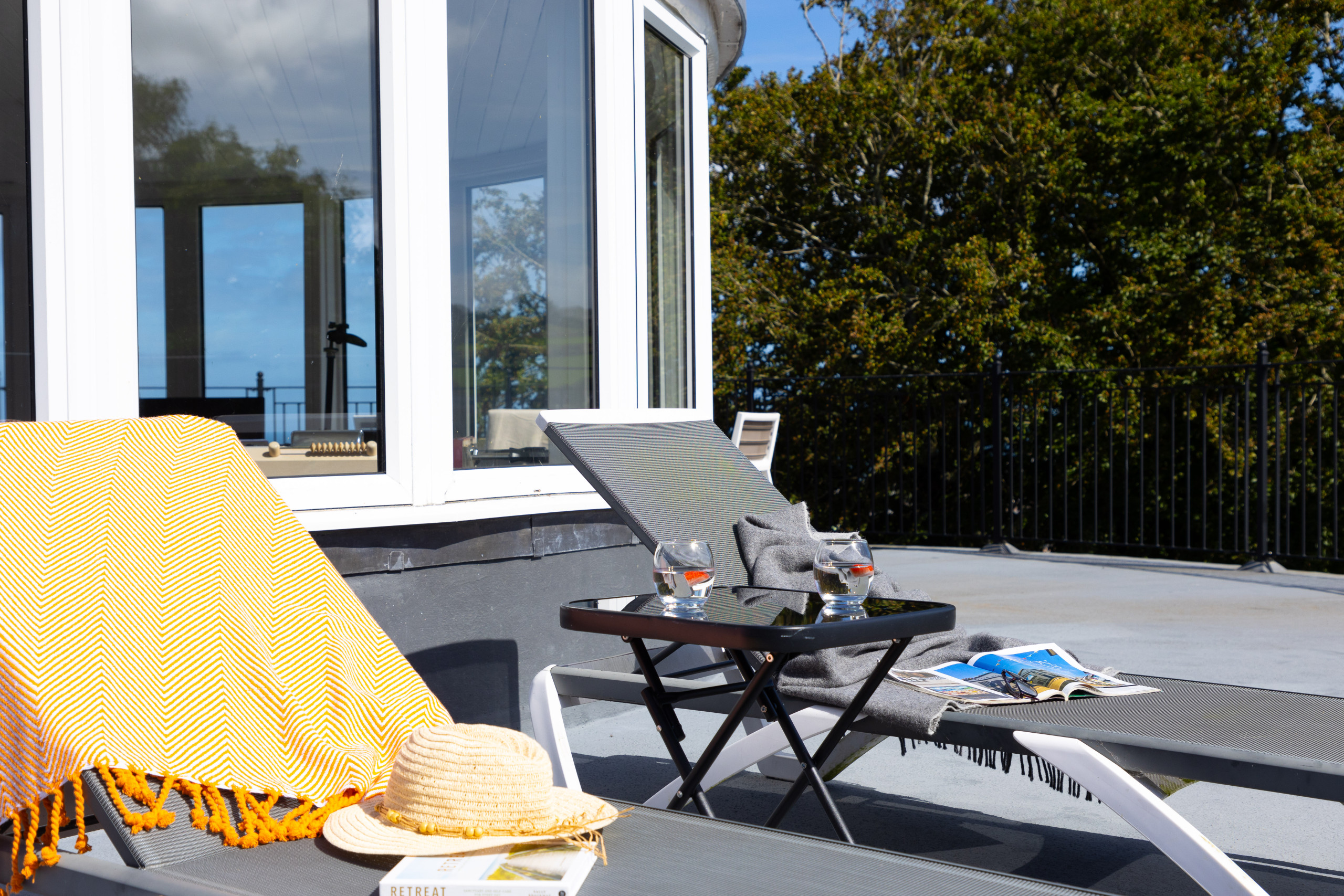Dispõe de jardim, mobiliário de jardim, parcela vedada, 40 m² de terraço, máquina de lavar roupa, máquina de secar roupa, churrasqueira, lareira, ferro de engomar, acesso internet (wifi), secador de cabelo, aquecimento central, estacionamento ao ar livre no mesmo edifício, 2 Televisores, tv satélite (Línguas: Inglês).