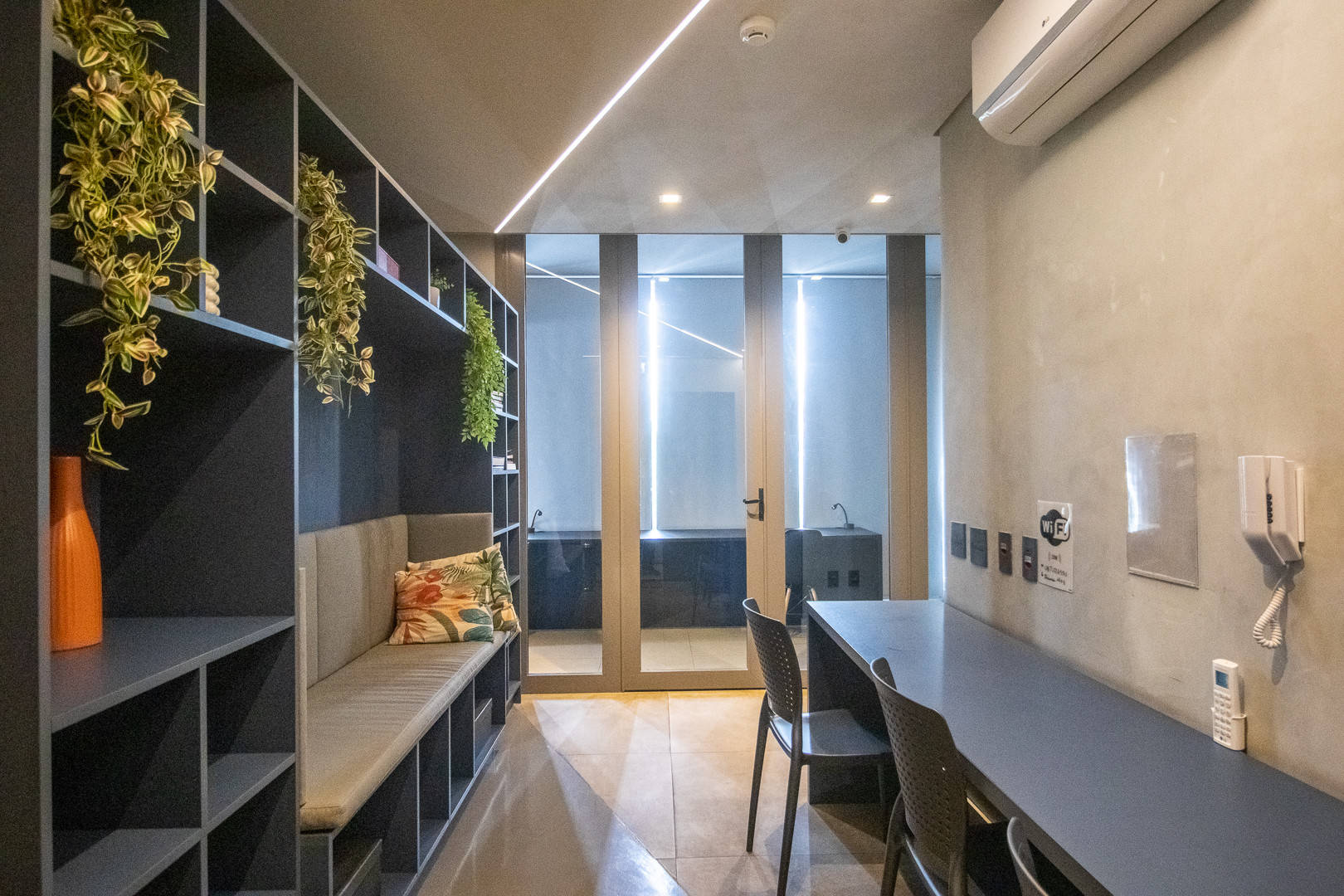 Dispõe de elevador, ferro de engomar, acesso internet (wifi), secador de cabelo, ginásio, ar-condicionado, piscina comunitária, 1 Televisão.