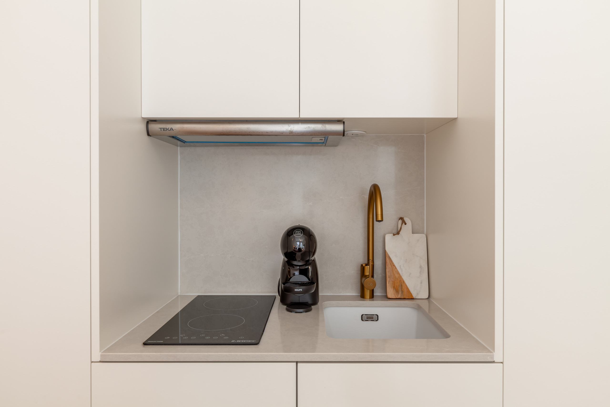 Our studio is meticulously equipped to provide maximum comfort and convenience for our guests. Equipped with modern amenities to meet your needs, including high-speed Wi-Fi, cable TV and much more. From the Dolce Gusto coffee machine to start the day energised, to the microwave, induction hob and electric kettle to satisfy every culinary need, everything has been thought of to make your stay a memorable one. What's more, we guarantee your comfort with top quality bed linen and bath towels, so you can enjoy a truly exquisite stay.