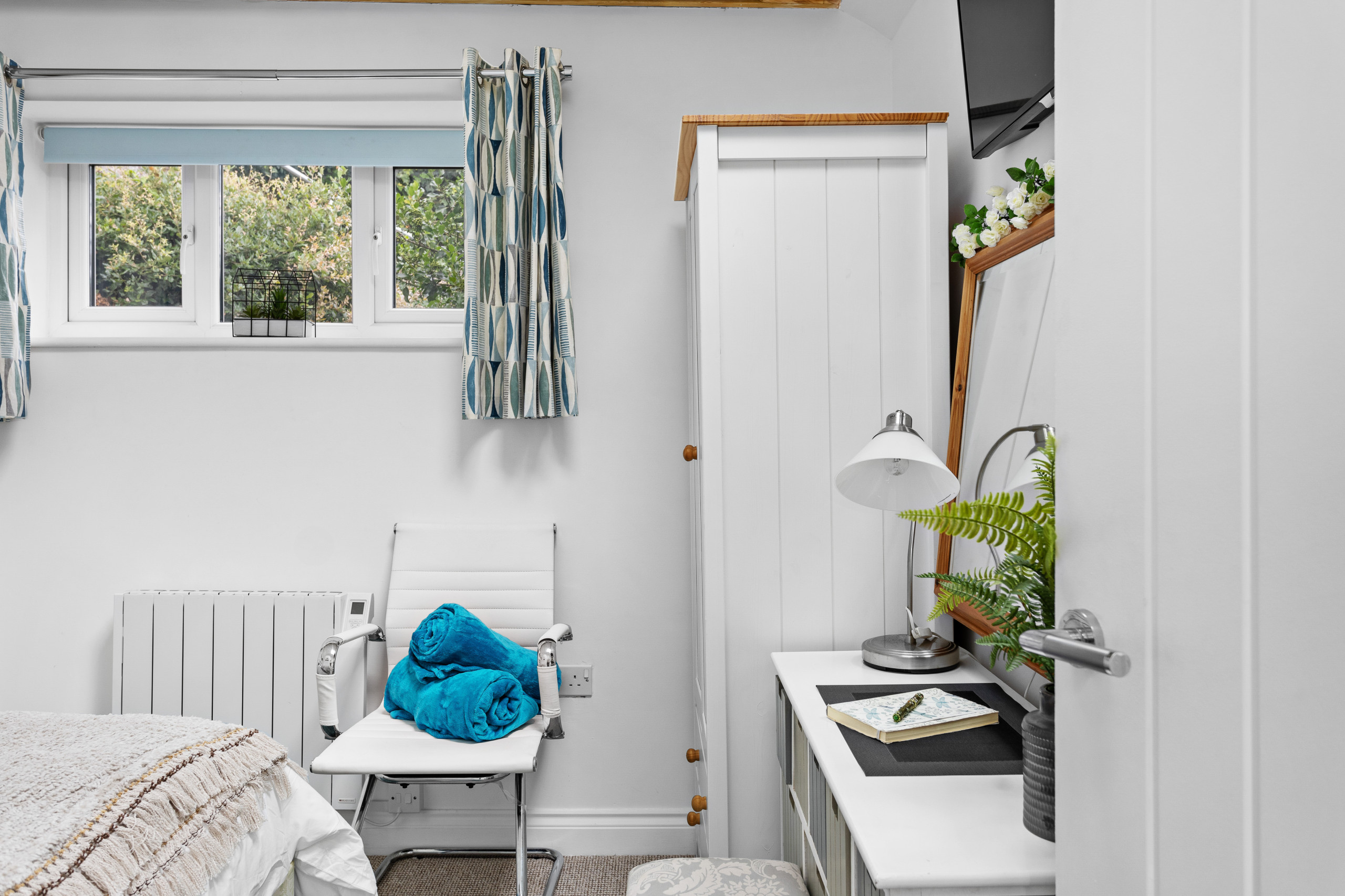 The ground floor also includes a cosy bedroom with a new double bed with a toilet and basin. Ideal for children, there’s even another smart TV so they can enjoy their programmes while the grown-ups relish some quiet time.