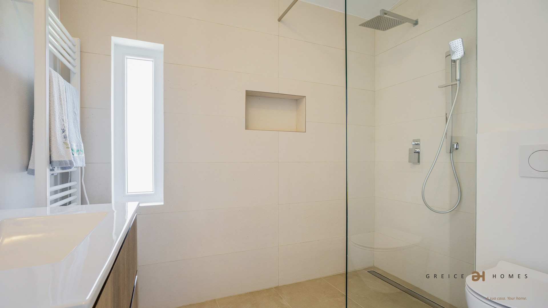 The villa also includes a guest bathroom with toilet and washbasin.