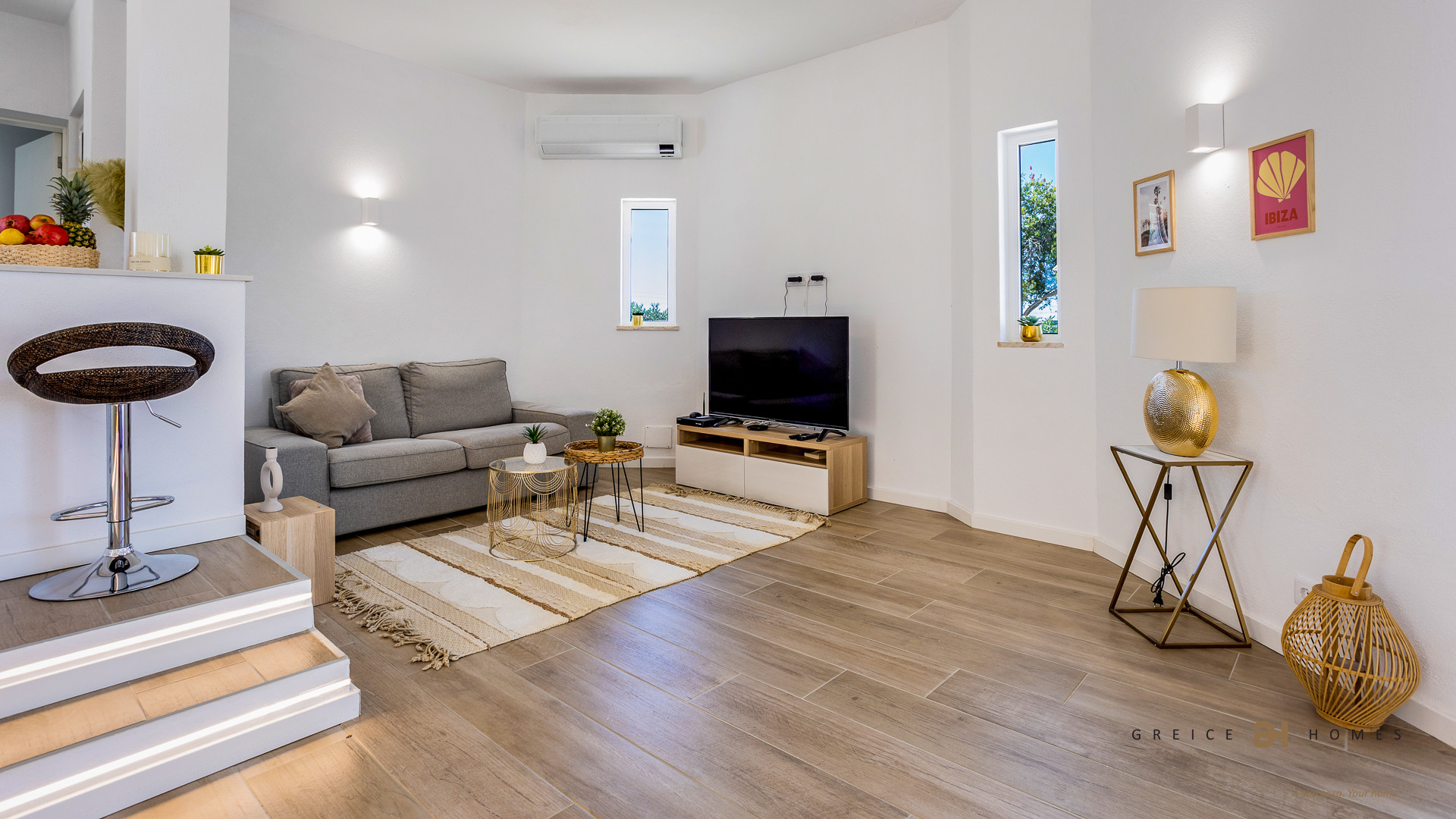 The villa is equipped with air conditioning, fireplace, alarm system, Wi‑Fi, TV with international channels and all the amenities needed for a comfortable stay.