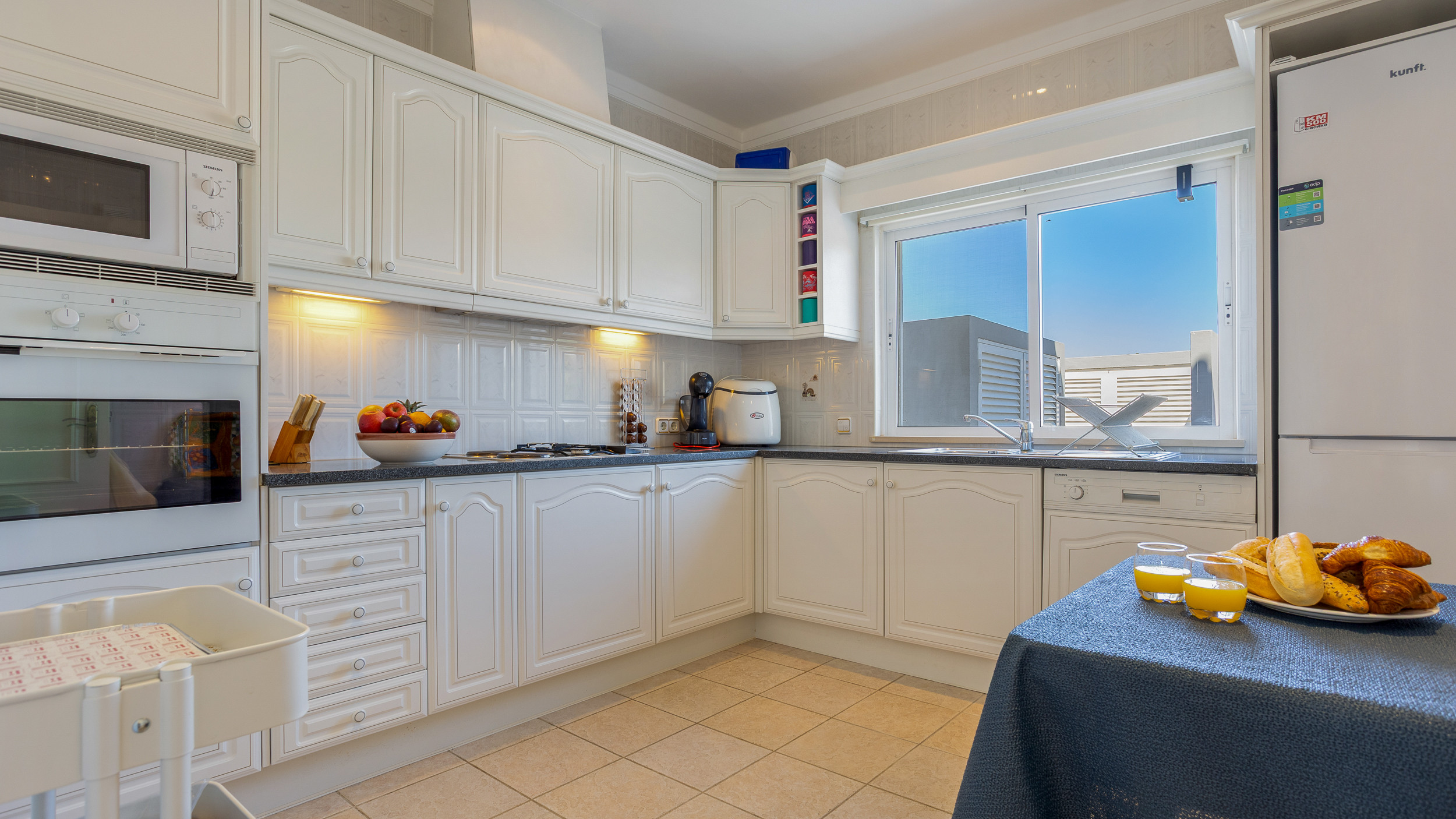 The independent kitchen (gas and electric) includes fridge, freezer, oven, microwave, mixed gas/electric hob, dishwasher, coffee machine, fryer, toaster, electric kettle, juice machine, crockery, cutlery and complete kitchen utensils for comfortable meal preparation.