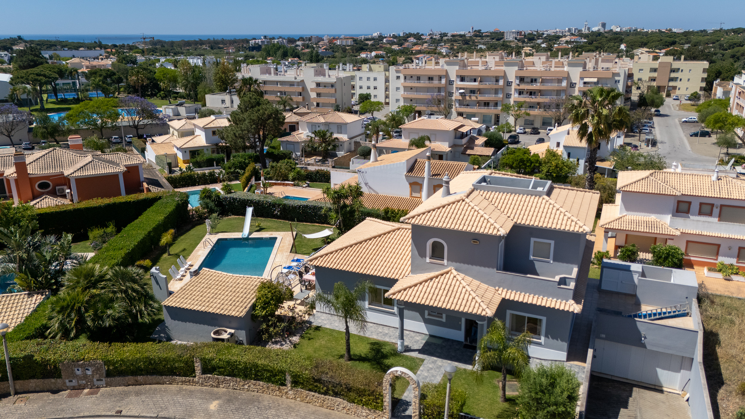 Discover this spacious and comfortable villa in Quarteira, ideal for family holidays or trips with friends. With 247 m² fully equipped, the property offers pleasant views over the garden and private swimming pool, and is located in a quiet residential area — perfect for those seeking relaxation while remaining close to beaches, restaurants and attractions.