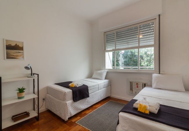 Appartement à Rio de Janeiro qui possède 2 chambre(s) et Capacité pour 4 personnes. Logement de 87 m² meublé avec goût et totalement équipé. La location se trouve à 100 m de la plage de sable "Praia do Leblon", 120 m du restaurant "Conversa Fiada", 130 m du restaurant "Nido Ristorante", 150 m de la gare routière "BRS 2: Rainha Guilhermina", 200 m de la gare routière "BRS 2: Visconde de Albuquerque", 200 m de la cafétéria "Nusa Leblon", 200 m de la cafétéria "Bica da Rainha", 350 m du supermarché "Zonasul", 400 m du supermarché "Hortifruti", 400 m de la plage de roche "Mirante do Leblon", 550 m du métro "Estação de Metrô Antero de Quental", 800 m du parc naturel "Parque Natural Municipal Dois Irmãos", 1 km de l'hôpital "Hospital Premier Leblon", 1 km de l'hôpital "Hospital Municipal Miguel Couto" et il est situé dans une zone avec enchantement zone et près de la mer.Elle dispose de ascenseur, lave-linge, sèche-linge, fer à repasser, accès internet (wifi), sèche-cheveux, climatisation dans toutes les chambres, garage même bâtiment, 3 ventilateurs, 1 Télévision.La cuisine indépendante, à gaz, est équipée avec réfrigérateur, micro-ondes, four, congélateur, vaisselle/couverts, cafetière, presse-agrumes, cuisinière, assiettes et bols.