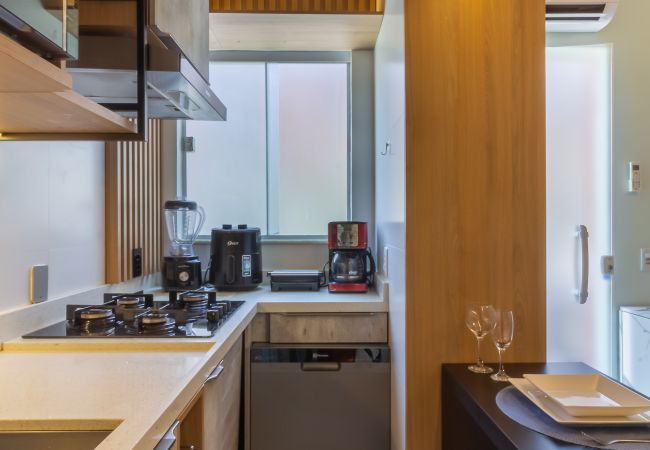 Appartement à Rio de Janeiro qui possède 1 chambre(s) et Capacité pour 2 personnes. Logement de 39 m² coquet et totalement équipé. La location se trouve à 150 m de la ville "Ilha da Gigóia", 190 m du restaurant "Restaurante Camarão da Barra | Ilha da Gigóia", 400 m de la cafétéria "Café da Poesia", 500 m du restaurant "Gioia Cucina Italiana", 600 m du restaurant "Bar Caiçara", 600 m de la cafétéria "Café da Ilha", 750 m du métro "Estação Jardim Oceânico", 1 km de la ville "Barra Point Shopping Center" et il est situé dans une zone avec enchantement zone et près de la mer.Elle dispose de lave-linge, sèche-linge, fer à repasser, accès internet (wifi), sèche-cheveux, climatisation, 1 ventilateur, 2 Télévisions.La cuisine américaine, à gaz, est équipée avec réfrigérateur, micro-ondes, lave-vaisselle, vaisselle/couverts, cafetière et presse-agrumes.2 avis