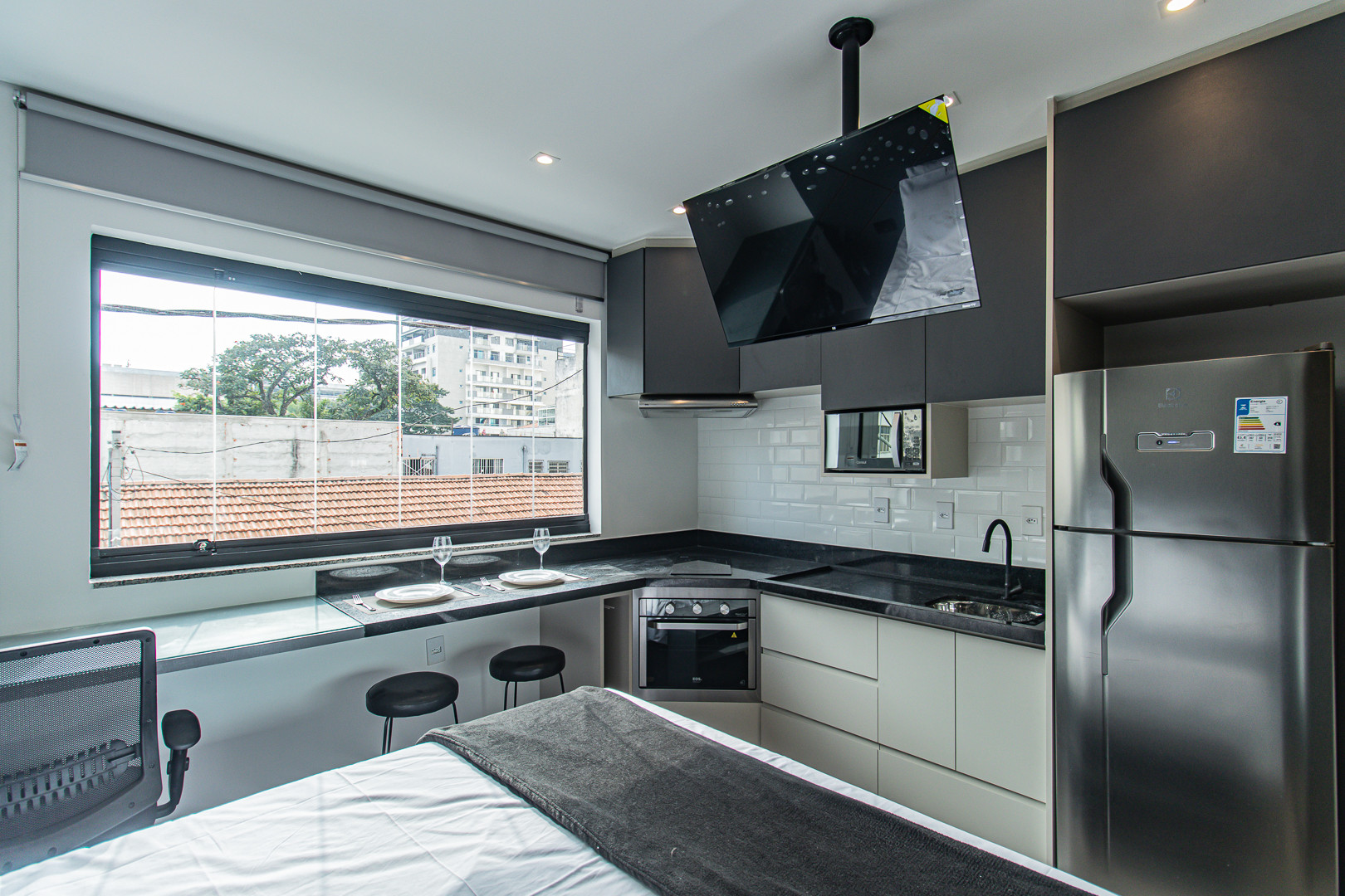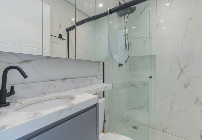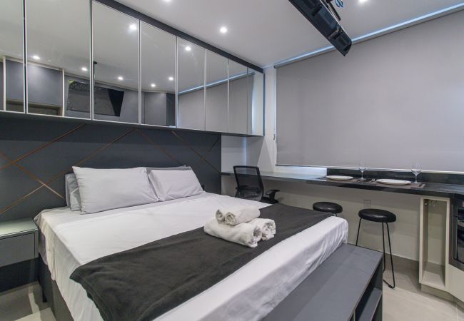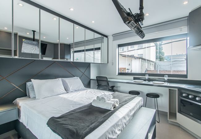 Studio à São Paulo qui possède 1 chambre(s) et Capacité pour 2 personnes. Logement de 27 m² coquet et moderne. La location se trouve à 72 m de la cafétéria "Zily Cacau & Café", 89 m du restaurant "O Porpetão Restaurante", 92 m du restaurant "Buteco Seu Rufino - Moema", 150 m de la cafétéria "Go Coffee", 170 m du supermarché "DIA Supermercado", 240 m du restaurant "Matsuya", 250 m du supermarché "Natural da Terra - Nhambiquaras", 270 m du restaurant "Emporio San Martin - Carnes Nobres", 500 m du supermarché "Minuto Pão de Açúcar", 500 m de la gare routière "Av. Ibirapuera", 550 m du métro "Eucaliptos", 700 m de l'hôpital "Hospital Moriah", 750 m du supermarché "Carrefour Express Alameda Maracatins", 1 km du métro "Moema", 2 km de l'hôpital "Hospital Santa Paula", 2 km de l'hôpital "Hospital Alvorada Moema", 2 km de l'aéroport "Aeroporto de São Paulo/Congonhas", 3 km du parc naturel "Parque Ibirapuera", 35 km de l'aéroport "Aeroporto Internacional de São Paulo/Guarulhos" et il est situé dans une zone bien communiquée zone et au centre de la ville.Elle dispose de fer à repasser, accès internet (wifi), climatisation, 1 Télévision.La cuisine américaine, à induction, est équipée avec réfrigérateur, micro-ondes, four, congélateur, vaisselle/couverts, cuisinière, assiettes et bols.